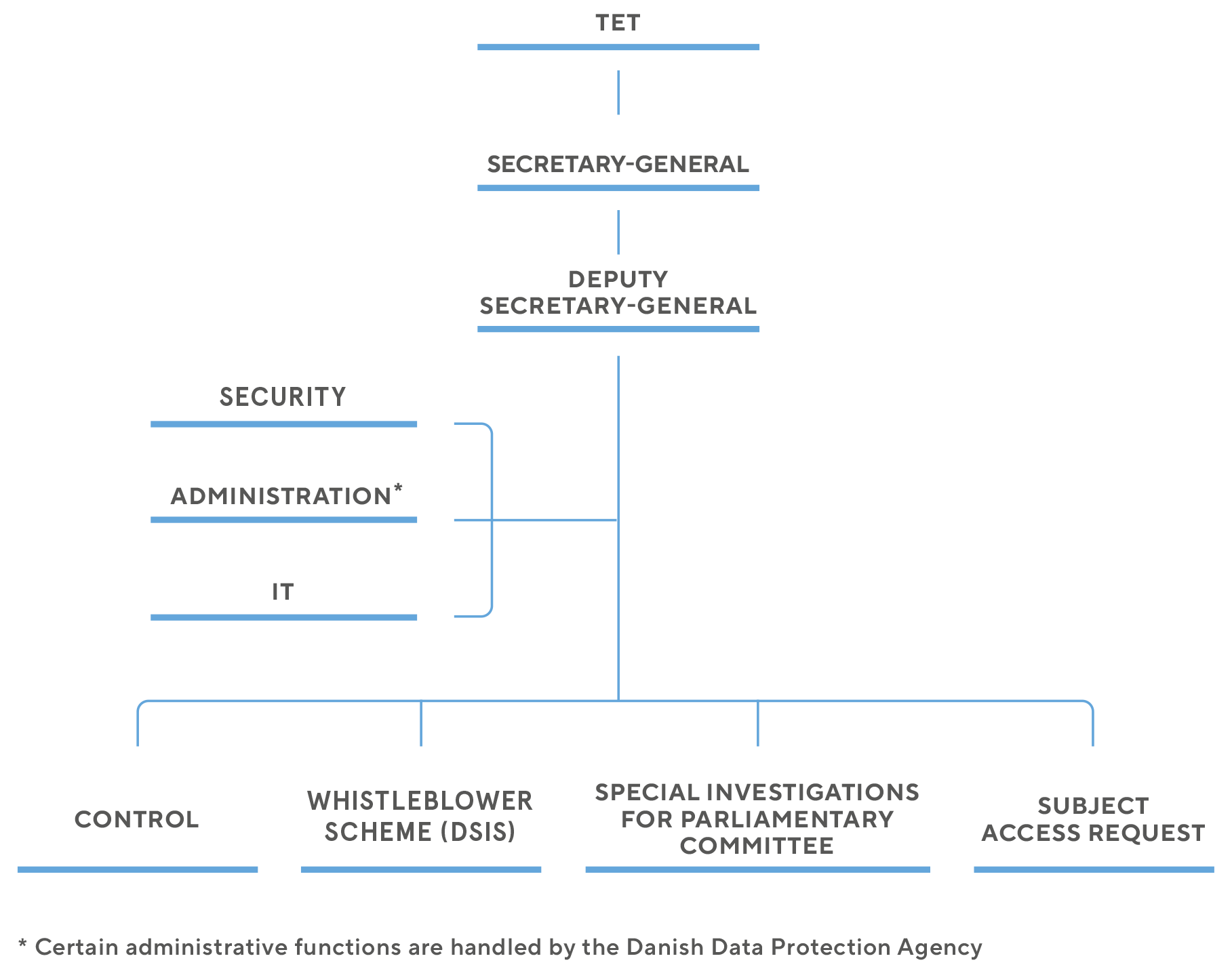 The secretariat unit is organizationally and administratively anchored in the Danish Data Protection Agency, which performs certain administrative functions, while the secretariat unit in professional and oversight matters reports directly to TET.